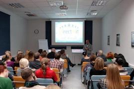 А Евгению Чупаку, дизайнеру впечатляющих презентаций, почти удалось убедить участников Клуба в том, что PowerPoint скоро уступить место новым инструментам. Sliderocketи Prezi – возможности этих он-лайн программ даже новичкам позволяют создавать интерактивные презентации с видео, аудио и др.. Более того, делая презентации в Sliderocket, вы можете измерить статистику просмотра каждой ее страницы. В завершение выступления Евгений провел мастер класспо работе в программе Prezi, которой заворожил аудиторию. Уверены, большинство участников сразу же после заседания посетилисайты www.prezi.com и www.sliderocket.com.