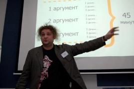 Господин Лазебник открыл заседание утверждением, что подготовка презентации – очень творческая работа, которая должна за считанные секунды продавать проект фокус группе из 5 человек жюри. В каждой заявке должны содержаться доводы и скрытый ответ на вопрос, почему член жюри должен Вас выбрать. Трендом рынка Лазебник назвал не уход от презентаций в PowerPoint, а право подавать работы так, как само агентство считает нужным.Первый доклад «Смерть от PowerPoint» Андрей Хохолкин начал с эксперимента. Выступление о нескучных презентациях он провел… под слайды чужой презентации! На ее примере Андрей показал основные ошибки выступающих, и дал 4 рекомендации, как «не умереть от PowerPoint и не довести до смерти клиента». Понимая, какие задачи решает ваша презентация, вы сможете подобрать ту ее структуру, которая сработает на вашу идею. Господин Хохолкин подчеркнул, что проект должен быть легко масштабируем: построив первые 2-3 слайда по принципу «Задача – катастрофа, решение – бомба, результат – улет», вы мотивируете слушателя заглянуть в остальные 97 слайдов.