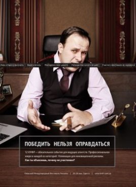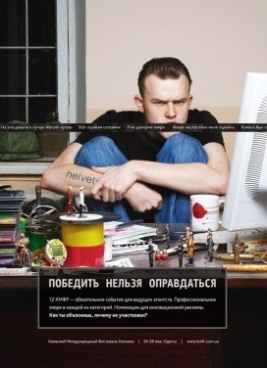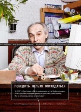 К продвижению 12-го Киевского Международного Фестиваля Рекламы подключилась пресса. На страницах десяти изданий были размещены рекламные макеты, подготовленные агентством ISD Group. Их цель – привлечь на КМФР рекламистов, обычно избегающих участия в профессиональных конкурсах. Авторы принтов полагают, что многие их коллеги хотели бы участвовать в фестивалях, но стесняются проигрывать, и хотели бы иметь оправдание на этот случай.