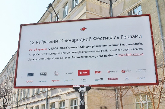 Решением стал текстовый макет: без изысков, в черно-белом исполнении, не крупным шрифтом. Обычные горожане вряд ли обратят внимание на такой щит. А вот рекламисты наверняка захотят посмотреть, кто это разместил невидимую рекламу. «Не предложить ли им наши профессиональные услуги?» Подходят к щиту, читают сообщение – попались! Идея была принята оргкомитетом КМФР. Экспериментировать – так по полной.