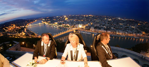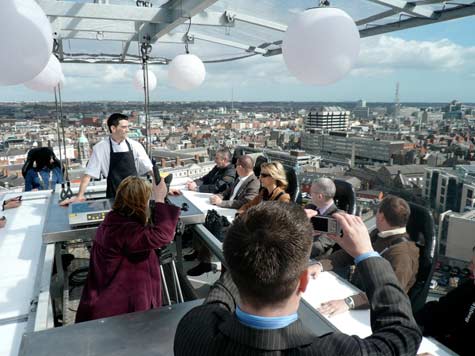 Dinner in the Sky – платформа, оборудованная в виде площадки небольшого ресторана, которая с помощью подъемного крана поднимается вместе с гостями на высоту 50 м. Платформа может служить прекрасной площадкой для корпоративного ужина, деловой встречи, пресс-конференции – или стать площадкой для съемок телепередач!