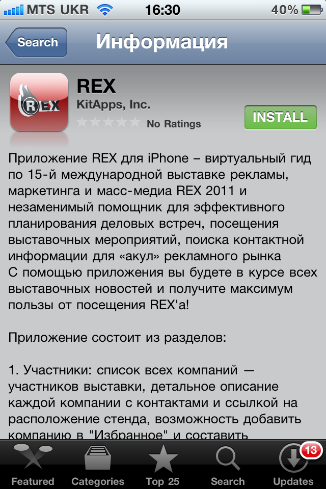 Таким образом, вы попадете на страницу App.REX.UA. Затем, нажав кнопку «Скачать приложение», перейдете на страницу скачивания приложения. Далее — нажмите кнопку «Установить».