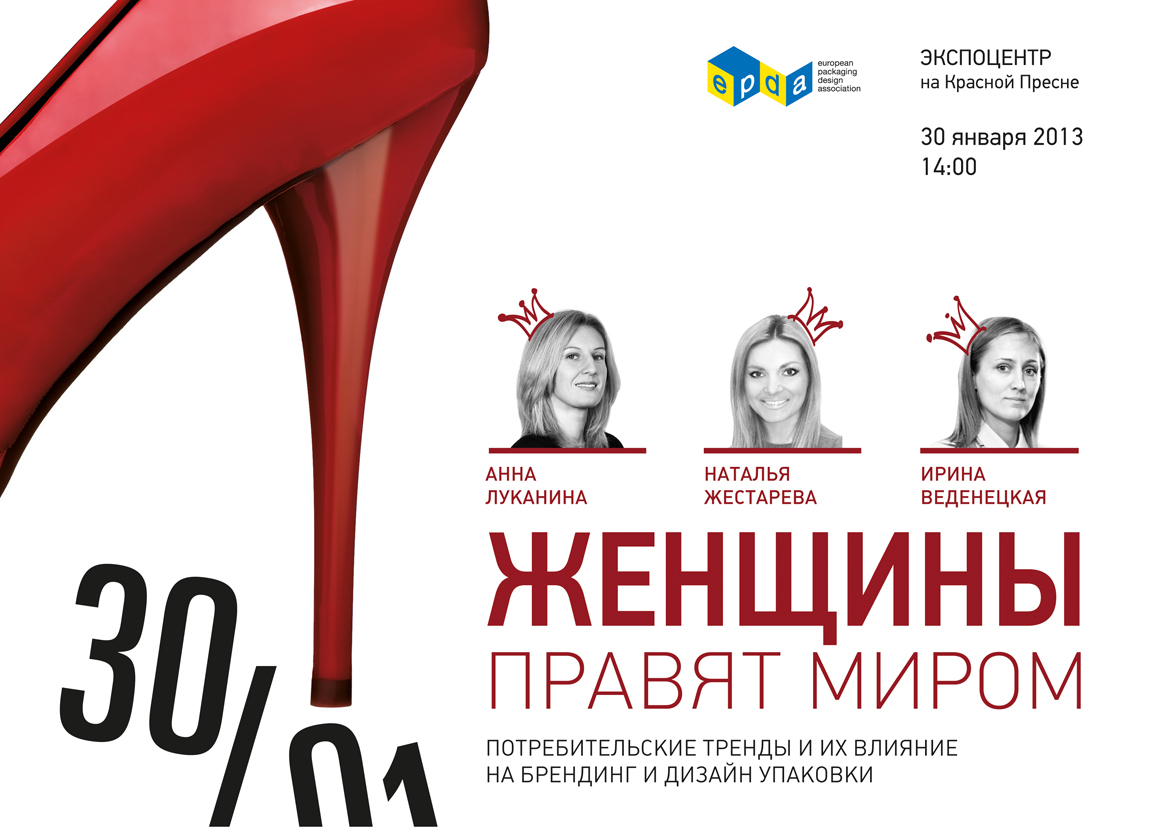 30 января в 14:00 в Экспоцентре на Красной Пресне состоится серия презентаций с дискуссией «Женщины правят миром: потребительские тренды и их влияние на брендинг и дизайн упаковки». Мероприятие пройдет в рамках международной выставки «Упаковка/УпакИталия 2013».