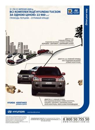 В марте текущего года компания «Хюндай Моторс Украина» запустила беспрецедентную акцию – с 1 по 31 марта все модели самого популярного в Украине внедорожника Tucson продавались по единой цене. Не нужно было раздумывать, сэкономить ли на кожаном салоне, стоит ли доплачивать за коробку «автомат» или за люк с электроприводом – цена одинакова на все комплектации.