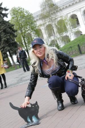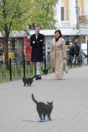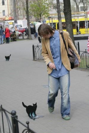 24 апреля киевских прохожих шокировали черные коты, в разгар утреннего часа пик разместившиеся на тротуарах города. Только подойдя вплотную к животному, можно было заметить, что это не настоящий кот, а оригинальная наклейка. Такой флешмоб устроили фанаты популярного сайта предсказаний Astrogid.com с подачи агентства Kaffeine Communications.