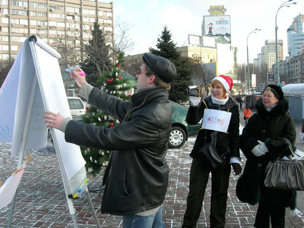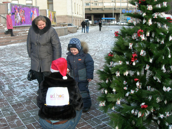 Ольга Гузько, менеджер проекта: «Зима обещает, Ad-Hoc выполняет! Мы предлагаем Вашему вниманию новый медиа носитель - елка обыкновенная - протестирована в лабораторных условиях и проверена в деле. Используется в комплекте с набором подарков и призов по усмотрению Заказчика в местах проведения творческих активностей для усиления и поддержания контакта с аудиторией. Мы предлагаем нестандартные решения, которые сейчас просто необходимы для продвижения вперед, используя возможности необычных носителей. Да, мы профи в медиа и мы будем развивать, строить и удивлять рынок. Мы делаем все то, что другие даже не обещали.»