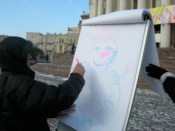 Творческому порыву поддались не только дети и молодежь, но и люди старшего поколения захотели себя проявить. За 2 часа было нарисовано более 100 оригинальных рисунков! А сколько было смеха, улыбок и азарта! Каждый художник поощрялся сладким подарком с новогодней елки.