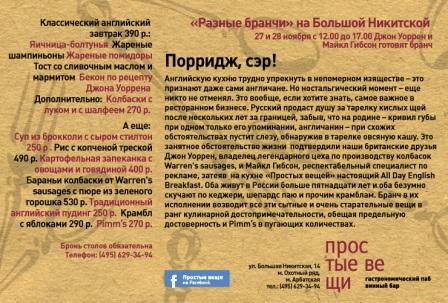Ни для кого не секрет, что традиционно английская кухня вызывает массу споров среди гурманов. Креативный директор агентства Ark Connect Майкл Гибсон решил поставить точку в этих дискуссиях и приглашает всех на English Brunch 27-28 ноября с 12 до 17 часов в ресторан "Простые вещи".