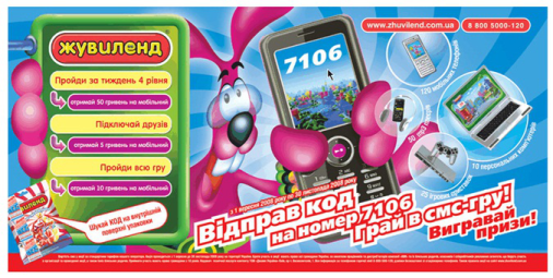 В рамках национальной кампании на основе SMS-игры, "Приключения в стране Жувиленд" (АВК, 2008 год) мы вовлекли в игру с брендом 300 тысяч покупателей по всей Украине, и выполнили маркетинговый план по продажам продукта уже на сентябрь 2008 года. Пусть и с Вами пребудет мобильная сила!