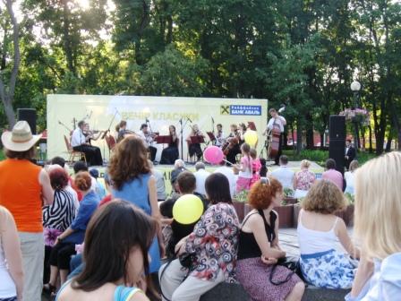У київському Парку ім. Т.Г. Шевченка 15 липнябуло проведено перший концерт класичноїсимфонічноїмузики «Вечіркласики з Райффайзен Банком Аваль».