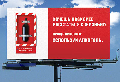 Необычный рекламный образ использовала в новой социальной работе компания «Красный квадрат». Бутылка с алкоголем и шприц с наркотиками здесь предстали в облике стоп-крана. Дернешь, и жизнь остановится.
