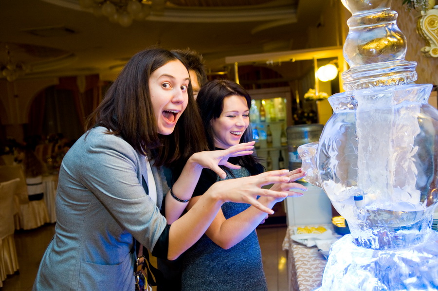 Компания Орими Трэйд решила встретить гостей волшебным самоваром – выполненный изо льда, светящийся изнутри символ южного гостеприимства.