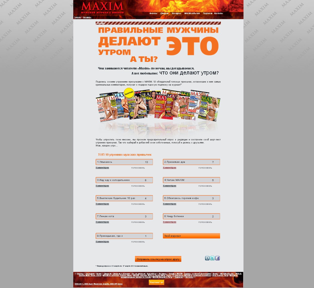 На сайте мужского журнала “MAXIM” стартует конкурс-опрос: «Правильные мужчины делают ЭТО утром, а ты?»