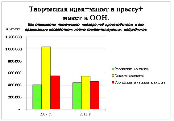 В ходе исследования было выявлено, что при общем росте рынка на 20 %, рост цен на разработку полномасштабных кампаний составил около 8%. По мнению экспертов данный показатель пока отстает от совокупного уровня инфляции за последние 2 года. Более того, стоимость услуг по разработке материалов для отдельных каналов даже снизилась по сравнению с 2009 годом (снижение составило около 17%)