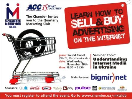 Американская торговая палата в Украине, совместно с крупнейшим украинским интернет-порталом bigmir)net и рекламным агентством Pulse, приглашают Вас посетить увлекательный интерактивный проект - Ежеквартальный Маркетинг-Клуб, который пройдёт, 28-го ноября, начало - в 19.00, клуб Sound Planet (Дмитриевская, 18/24).Клуб предлагает маркетологам крупнейших компаний Украины возможность общения и обмена опытом в уютной клубной обстановке, с освещением одной из наиболее интересных тем в сфере маркетинга.