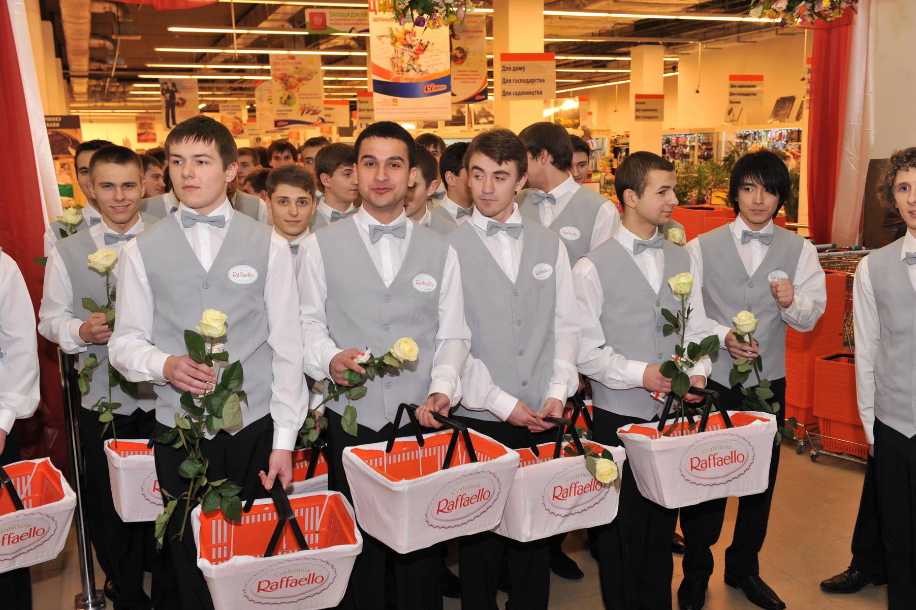 7 марта,  с  15:00 до 19:00 более пятидесяти прекрасных юношей встречали каждую посетительницу супермаркета «Сільпо» на Днепровской Набережной,33  и  заботились  о  том,  чтобы  дамы  могли легко и с удовольствием совершить   праздничные  покупки.  Их  задачей  было  сделать  женщине сюрприз,  создать  атмосферу  романтики  и  внимания. То есть, сделать обыденный  поход  за  покупками  приятным  праздником! Мужчины во всем помогали  женщинам  во  время  выбора продуктов в тороговом зале, были вежливыми  и  интересными  собеседниками, сопровождали их до кассы. На прощание  каждая  женщина  получила  от  своего  галантного  помощника подарок  от  ТМ  Raffaello,  цветы  — и, конечно же, комплименты, ведь услышать приятные слова в свой адрес для женщины так важно!