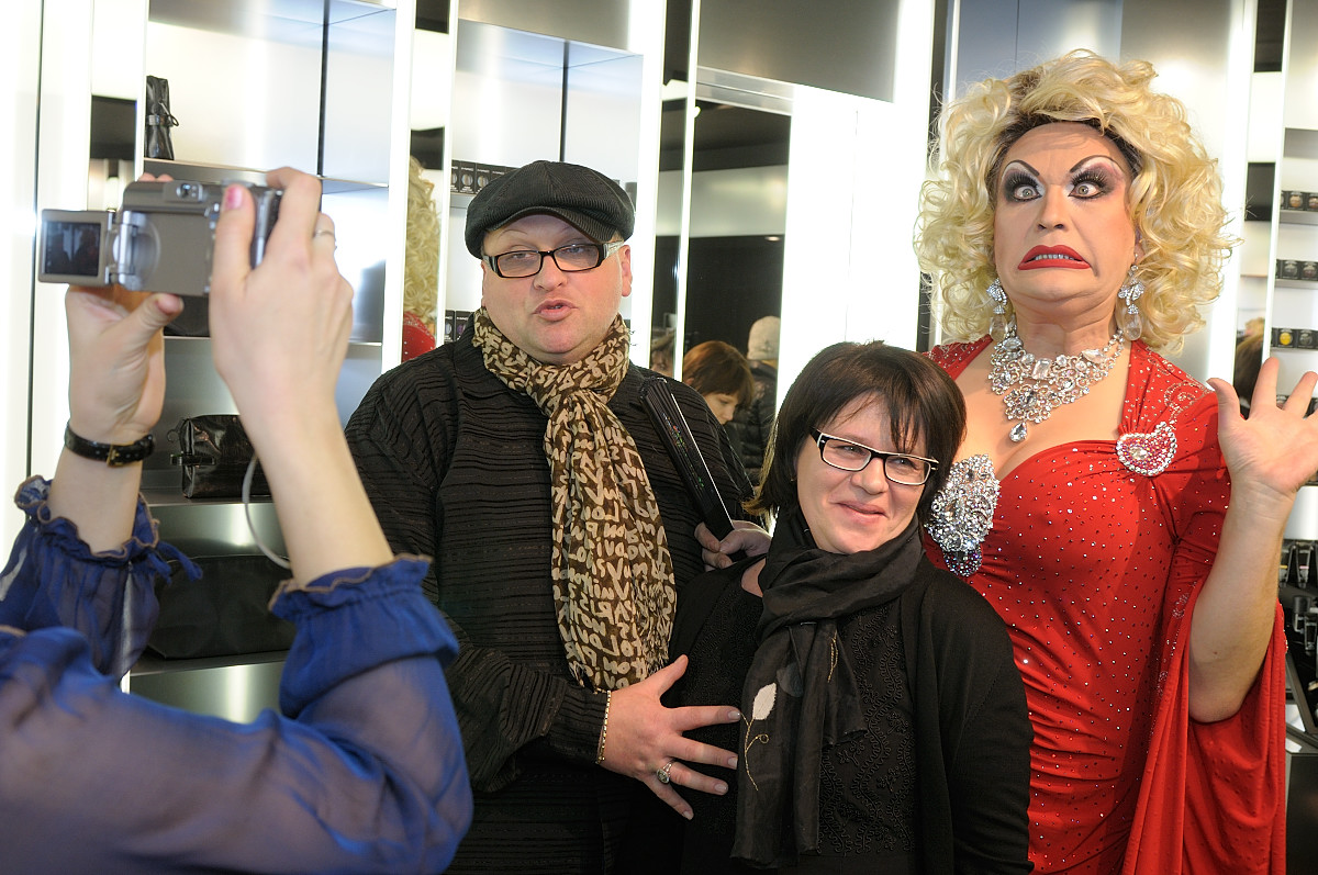 В один вечер магазины М.А.С в Киеве и Днепропетровске превратились в эпицентр праздника и счастья. Именно там была представлена новая линия косметики, которую можно было подобрать с помощью визажиста и не менее авторитетного эксперта - травести дивы Зазы Наполи. Подарков и угощений было так много, что их развозили тележками. Гостей встречали консультанты, официанты угощали закусками и напитками, ассистенты помогали подобрать косметику, а профессиональные визажисты делали макияж всем желающим. Грустных лиц замечено не было, так как организацией праздника полностью занималось агентство маркетинговых коммуникаций FULL CONTACT COMMUNICATIONS. .jpg)