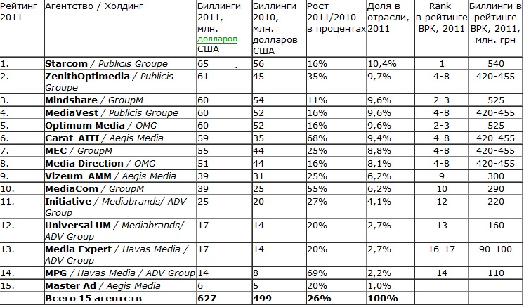 В рейтинг RECMA не вошли такие украинские медиа-агентства как MediaSystems, Maxus Sigma, Media Activity, Linea12/ETC, Navigator, ORT Media, AdHoc/IQ Media, B4B, Infocon, MediaArts, MediaKit, Nostra, UkrMedia, MediaFirst, MCG Maxximum.