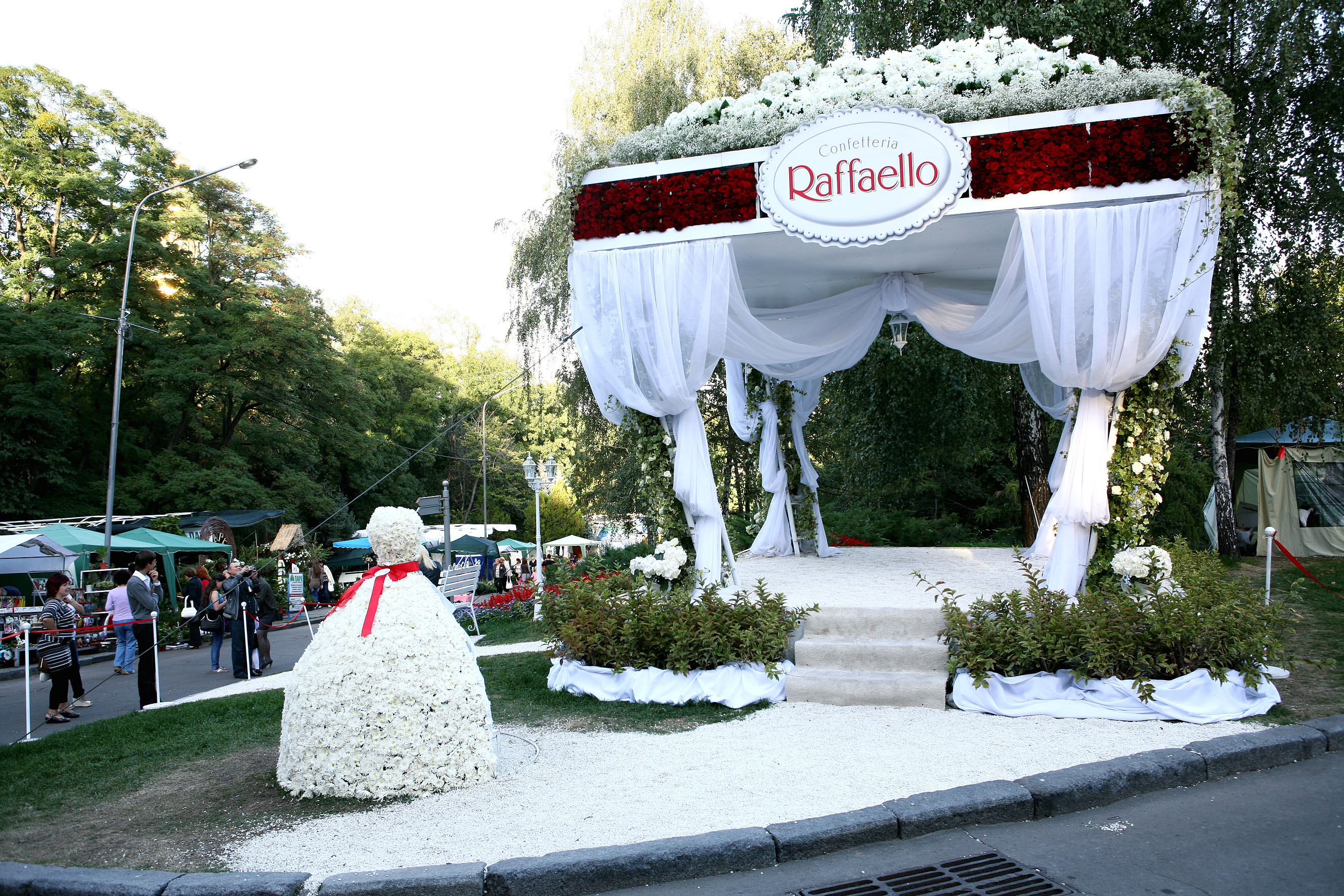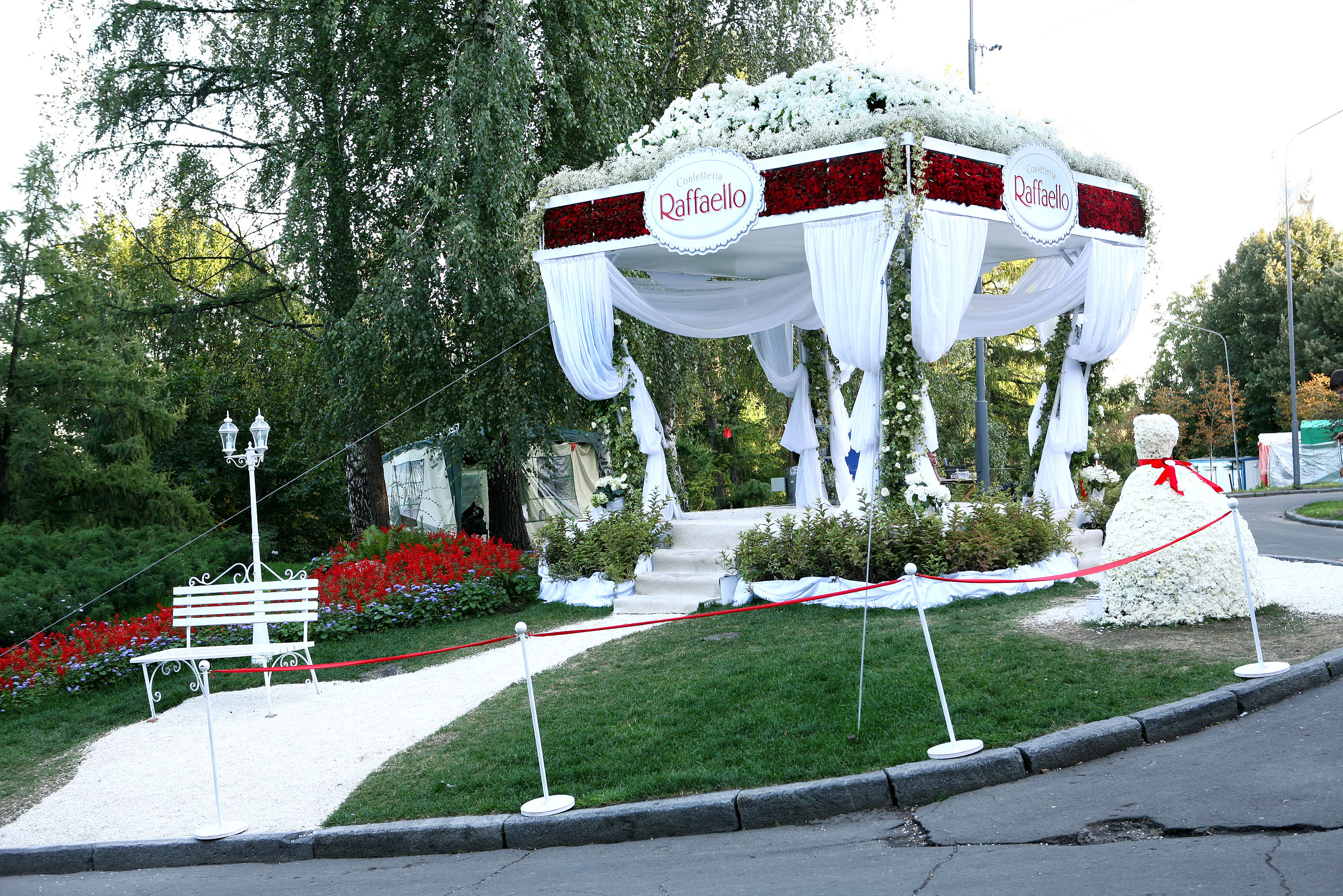 В этом году Raffaello предлагает всем гостям выставки посетить красивую, украшенную живыми цветами беседку Raffaello, которая создает оазис романтической сказки на выставке цветов. Данная цветочная инсталляция - это настоящее украшение праздника, которое сможет запечатлеть на фото каждый желающий.