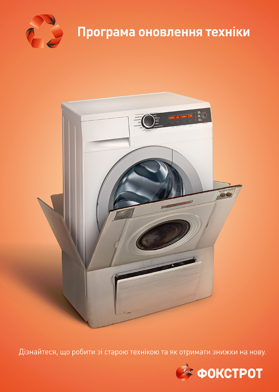 Креативное агентство «Мичурин» разработало имиджи для визуализации программы обновления техники в ТС «Фокстрот. Техника для дома». Суть программы состоит в том, что потребителям предоставляется возможность обменять свою старую (даже нерабочую) технику на новую со значительной скидкой.