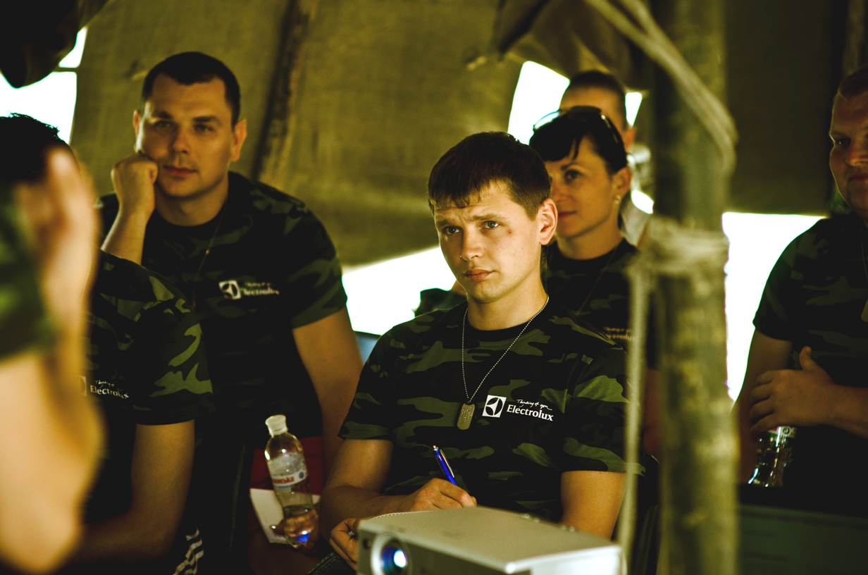 Первым этапом обучения в Академии стала электронная программа, позволившая отобрать тридцать лучших продавцов из каждого региона проекта (Киев, Одесса, Донецк, Харьков, Днепропетровск). Дальше продавцов ждали не только продуктовые тренинги, но и настоящие испытания – пейнтбол и стрелковый клуб. После сурового отбора, уже практически солдаты Electrolux отправились проходить самый приятный и в тоже время непростой этап. В Ивано-Франковске пятнадцать финалистов программы ожидала экскурсия по заводу Electrolux и «последняя баррикада» – специальный квест от Full Contact. Тематические задания на знание продукции, военный антураж, полевые условия, палатки, стрельба, полосы препятствий – только самые стойкие и лояльные прошли квест до конца и получили главный приз – поездку на производство Electrolux в Венгрию.