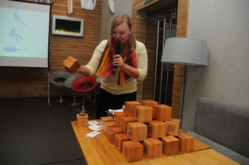 Первый деревянный куб с адресом сайта агентства http://qube.com.ua/ гости получиликурьерской доставкой, а второй – уже на ивенте. Таким образом, два, казалось бы, несвязанных между собой предмета преобразовались в орехокол. Это воплощение главныхкачества команды – она эффективно и оперативно «щелкает задачи клиентов как орехи».