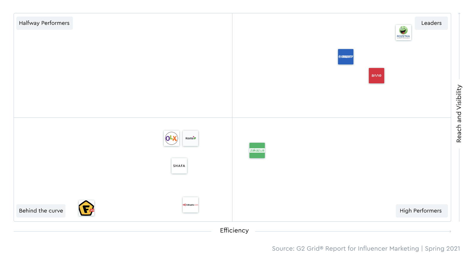 Остальные бренды пока что существенно оторвались от лидеров. Это говорит о том, что influence маркетинг среди e-commerce брендов только начинает развиваться в Украине. Тем не менее, в ближайшее время мы увидим, что компании будут переходить от разовых коллабораций с блогерами к системному сотрудничеству, уделяя этому методу продвижения должное внимание наряду с контекстной и медийной рекламой.
