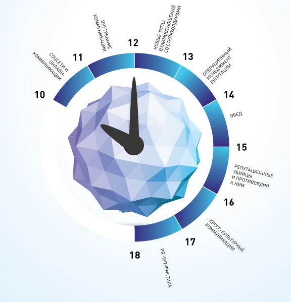 КАК: Спикеры живо и практически полезно (с примерами) представляют 20-минутный доклад, построенный по логике ЧТО Я ЗНАЮ НАВЕРНЯКА О … репутации, коммуникации и PR-будущем (каждый по теме своего контент — блока — они приведены ниже)