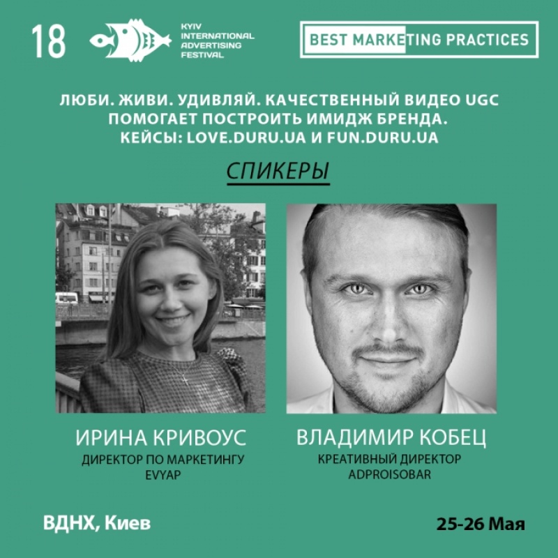 26 мая на конференции Best Marketing Practices в рамках КМФР выступит Ирина Кривоус, директор по маркетингу Evyap, и Владимир Кобец, креативный директор AdProIsobar.