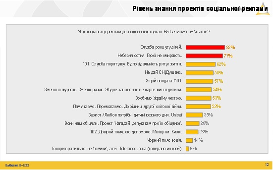 Наибольшая узнаваемость у кампании «Служба розшуку дітей» (82%).