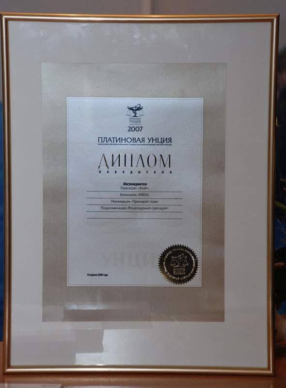 Москва, 12 мая, на состоявшейся в Москве церемонии награждения победителей Всероссийского открытого конкурса профессионалов фармацевтической отрасли «Платиновая унция» препарат «Энап» компании «КРКА» был признан «Лучшим рецептурным препаратом 2007 года». Ровно год назад Энап также был удостоен награды как «Лучший рецептурный препарат 2006 года».