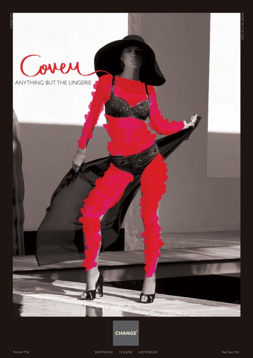 CHANGE - это международная марка нижнего белья, купальников и домашней одежды. Чтобы прорекламировать ее в Саудовской Аравии, где как известно цензура не допускает изображения обнаженного тела, рекламное агентство Ogilvy "отредактировало" принты, сделав, таким образом, акцент на самой одежде.