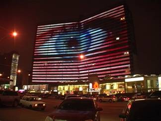 Огромные светодиоидные фасады украшают многие столицы мира, добавляя мощные световые визуализации в ночную жизнь мегаполисов. В марте 2008 года эта революционная технология была успешно запущена в Москве на центральных и боковых фасадах гостиниц «Золотое Кольцо» и «Белград», расположенных на Смоленской площади (размеры видеодисплеев на этих зданиях составляют более 5 тысяч кв. метров каждый). Эксклюзивные права на проведение рекламных кампаний на этих фасадных конструкциях также принадлежат агентству People Worldwide.