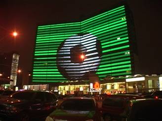 В Москве запущен самый зрелищный рекламный проект, реализованный с использованием новейших светодиодных технологий освещения. В мае текущего года фасад знаменитой «книжки» на Новом Арбате превратился в гигантский видеоэкран, гармонично интегрированный в архитектуру высотного здания. Масштаб конструкции превосходит все существующие на сегодняшний день динамические рекламные носители России, Европы и Америки: размер светодиодного дисплея превышает 7600 квадратных метров. Разработчиком проекта выступила компания «Дрим Лайт Технолоджи», а эксклюзивные права на продажу рекламы на этом уникальном медиа-фасаде получило рекламное агентство People Worldwide.