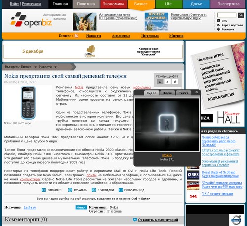 Впрочем, размещением одних только видеороликов разработчик сервиса, компания Infodigitech, не ограничилась. Рекламодатель может использовать в качестве рекламного носителя стандартный баннер, флеш или текстовое сообщение, и в таких случаях реклама будет эффективной, ведь носитель располагается в теле текста читаемом посетителем сайта, а не за его пределами.