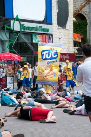 24-25 июля в Киеве прошла презентация «Сообщества флэшмоберов Украины». В рамках ме-роприятия свыше 400 голодных моберов вышли на улицы города, чтобы утолить свой голод 85 кг печенья ТМ TUC.
