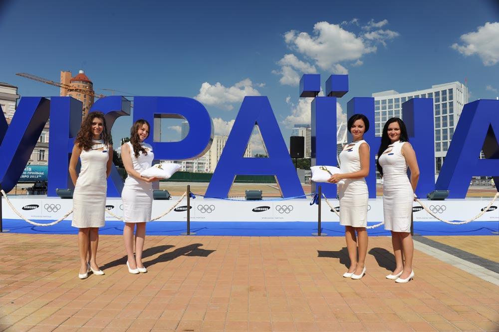 Киев, Украина – 27 июля 2012 года – Компания «Samsung Electronics Украина» объявляет о старте национальной кампании по поддержке Олимпийской сборной Украины. В рамках уникальной инициативы, в самом центре столицы, компанией установлен символ поддержки Национальной Олимпийской сборной украинцами – семь гигантских синих букв синего цвета, составляющих слово У.К.Р.А.Ї.Н.А.