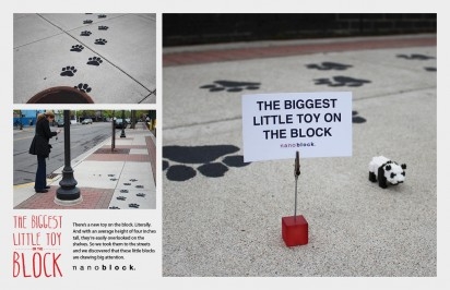 Для рекламы микроконструктора Nanoblock креативщики из Team Detroit, США провели ambient кампанию. Так как из-за маленького размера кирпичики Nanoblock сложно заметить на полке, креативщики решили обратить внимание на игру, разместив фигурки из микроблоков на улице.