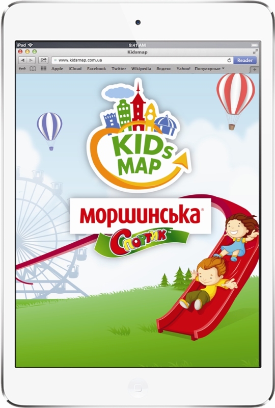 Май, 2014 года – ТМ «Моршинская “Спортик”» представила новый геолокационный сервис — www.kidsmap.com.ua. Отныне каждый активный родитель может найти места, куда пойти с ребенком, в том районе, где он находится, используя удобный интерфейс поискового сервиса, доступного как на компьютере, так и на смартфоне в виде мобильной версии и приложения.