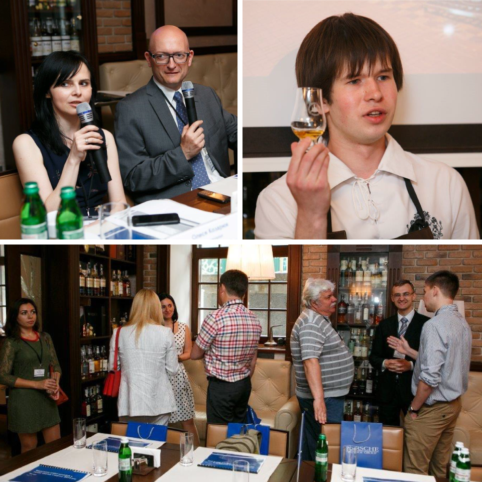 Качество автомобильного бренда проверяется, в том числе,выдержкой годами – как и качество традиционного шотландского виски. Поэтому избранный формат встречи как нельзя лучше подчеркивал высокий класс автомобилей, которые финансирует PorscheFinance Group. Так, после официальной части мероприятия, на которой представители компании рассказали о приоритетных направлениях работы в текущем году, журналистам предложили в неформальной обстановке продегустировать уникальные сорта виски. В этом им помогал профессиональный сомелье, один из лучших знатоков крепких спиртных напитков в Украине Олег Козловский.