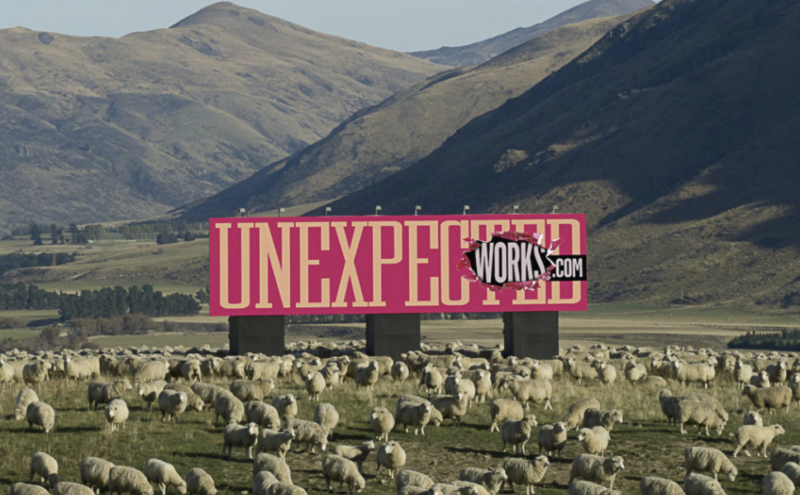 Рекламное агентство DDB Worldwide (входит в Omnicom) представило билборды с адресом www.unexpectedworks.com, первый из которых креаторы разместили на пастбище в Новой Зеландии. В Гарстоне, ближайшем населенном пункте живет около 100 человек и 40 тыс. овец. Компания продвигает концепт Unexpected Works — «Неожиданные работы» или «Неожиданное работает», пишет Campaign Brief.