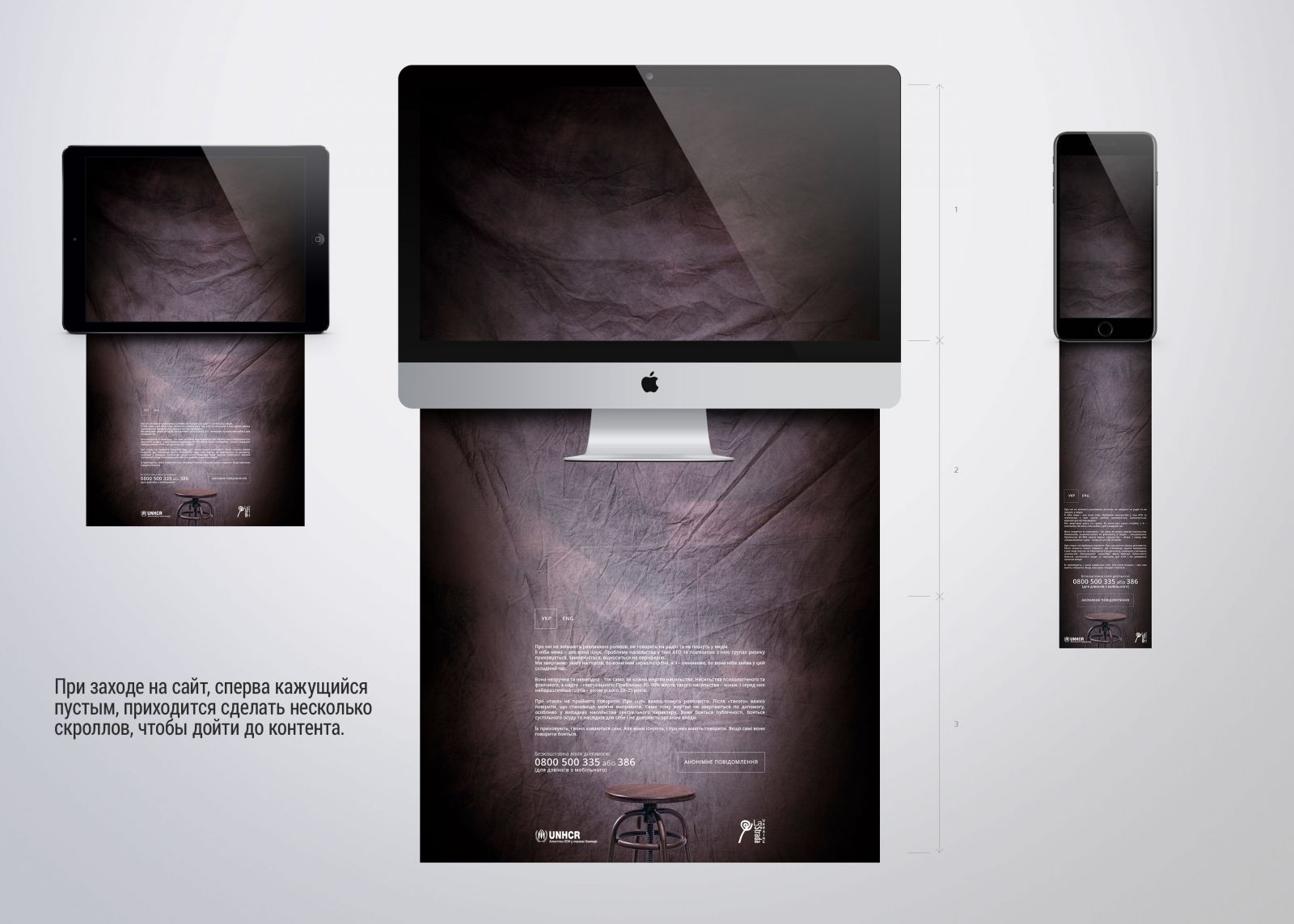 «Найбільшою проблемою, з якою ми зіткнулися, стала відсутність будь-якої зрозумілої інформації, пов'язана насамперед із замовчуванням і маргіналізацією теми насильства в кризовій зоні. Воно є, але й ніби немає. Тож ми вирішили піти шляхом «що нам заважає, те нам і допоможе». Якщо про це ніхто не говорить, то давайте так і скажемо. Жертв немає — покажемо це. Усі мовчать, ми теж помовчимо. Вийшла така кампанія — без героїв. У всіх сенсах», ‒ розповідає Влад Галяпа, асоційований креативний директор PROVID.