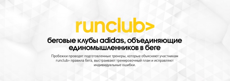Таким образом, компания открывает новую страницу в истории бега. Задача adidasrunclub> - объединять людей, ведь бег - это образ жизни, источник энергии и удовольствия, как для профессиональных спортсменов, так и для тех, кто впервые выходит на беговую дорожку.