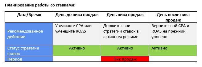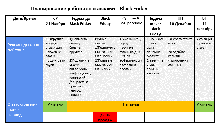 Планирование работы со ставками – Black Friday