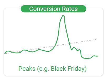 - Примените событие «Исключение данных» в те дни, когда коэффициенты конверсии значительно изменились пика продаж